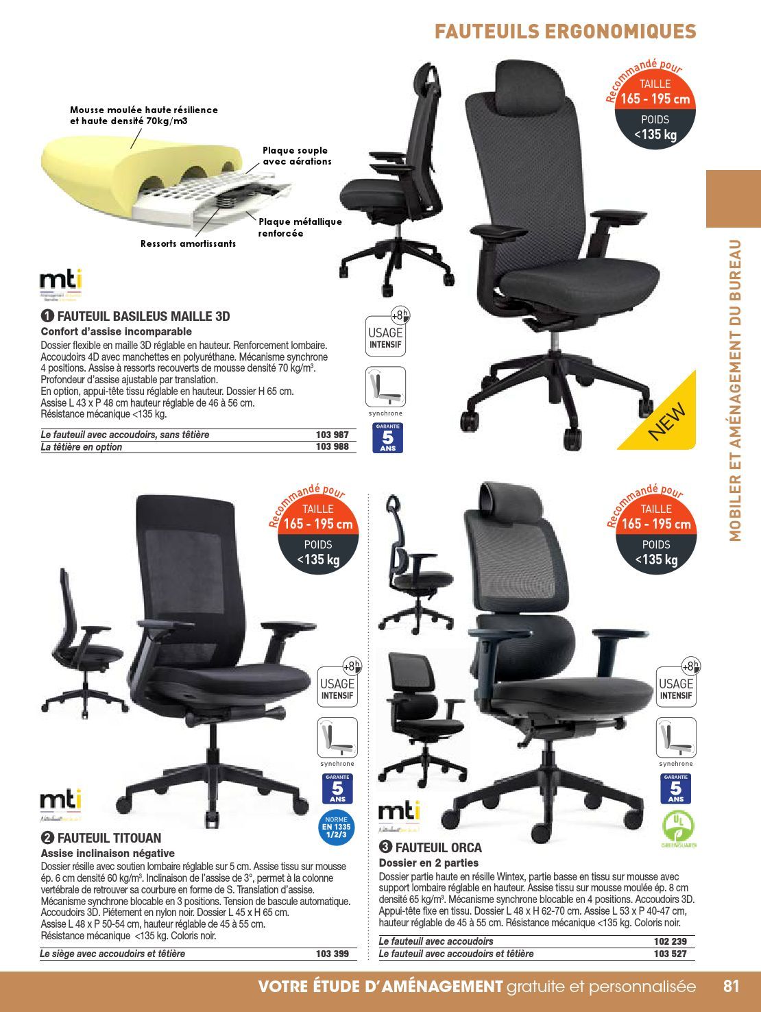 Fauteuil de bureau mt international mecanisme synchrone 5 positions coloris noir